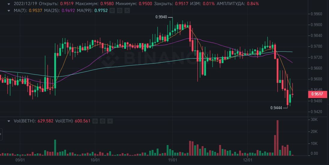 Дисконт в торговой паре bETH/ETH достиг 5%. Некоторые участники криптосообщества считают, что снижение курса токенизированной версии Ethereum на блокчейне криптобиржи Binance можно использовать для выгодного закупа монет