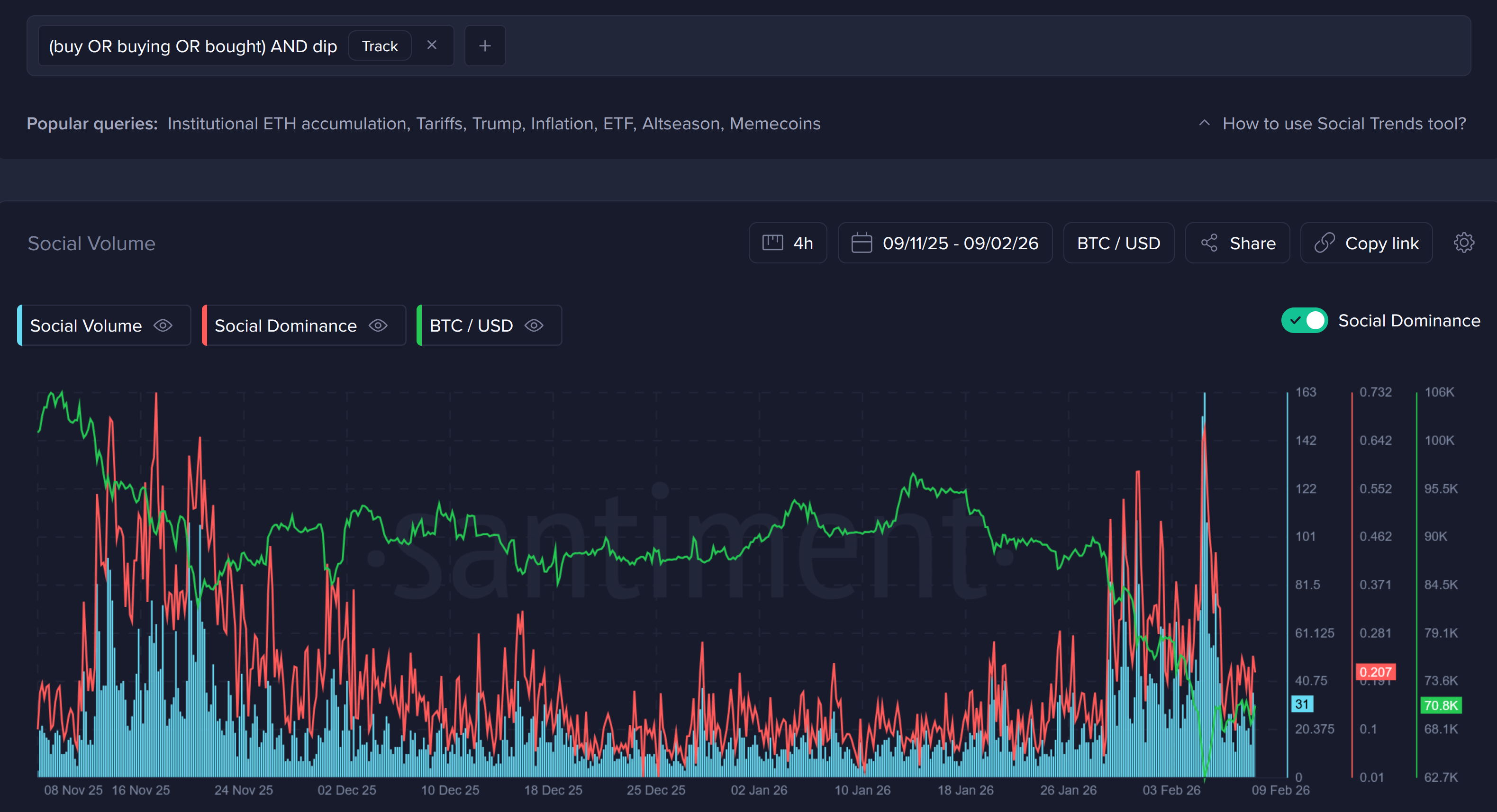 Аналитики отслеживают частоту упоминаний формулировок вроде «покупать просадку» в соцсетях. Их количество увеличивается по мере снижения цены, особенно при резких движениях.