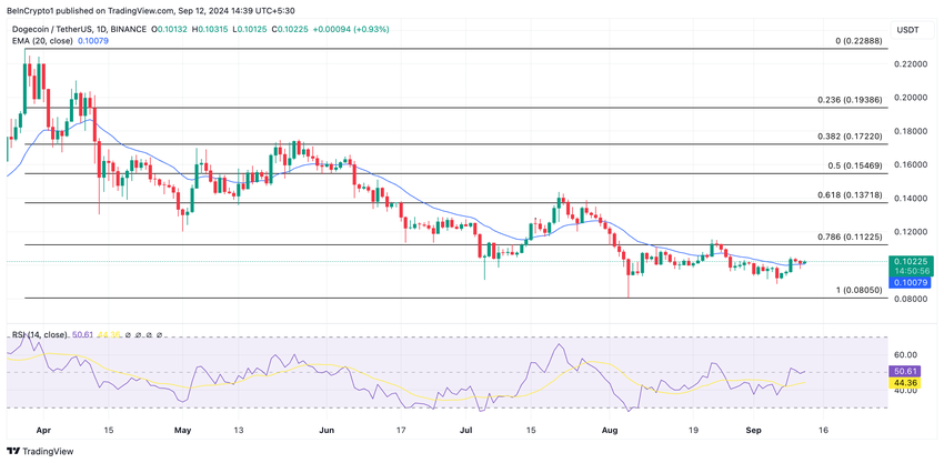 Кроме того, индекс относительной силы (RSI) находится на отметке 50,61. Это свидетельствует об относительном равновесии между спросом и предложением. Если покупательская активность наберет обороты, тестирование будет успешным. Тогда Dogecoin сможет продолжить восходящий тренд и достичь $0,13.