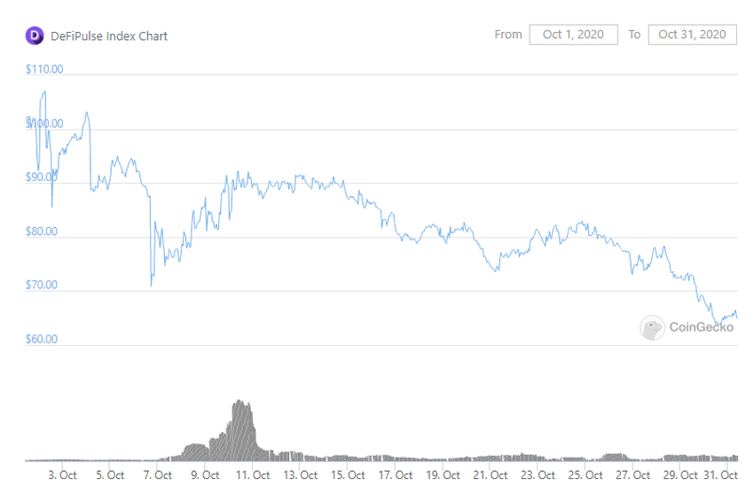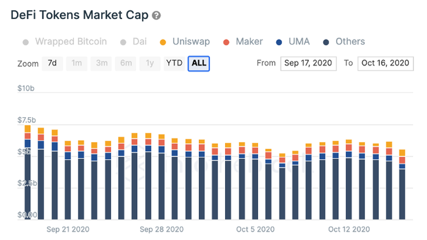 Если раньше DeFi-сегмент мелькал практически во всех отраслевых новостных заголовках, то в настоящий момент этот рынок переживает замедление роста. Особенно энергичный подъем децентрализованные финансы демонстрировали в течение нескольких месяцев после мартовского обвала криптовалютного рынка. Интерес инвесторов к DeFi достиг пика в сентябре, когда месячные торговые обороты на Uniswap обошли площадку Coinbase Pro.