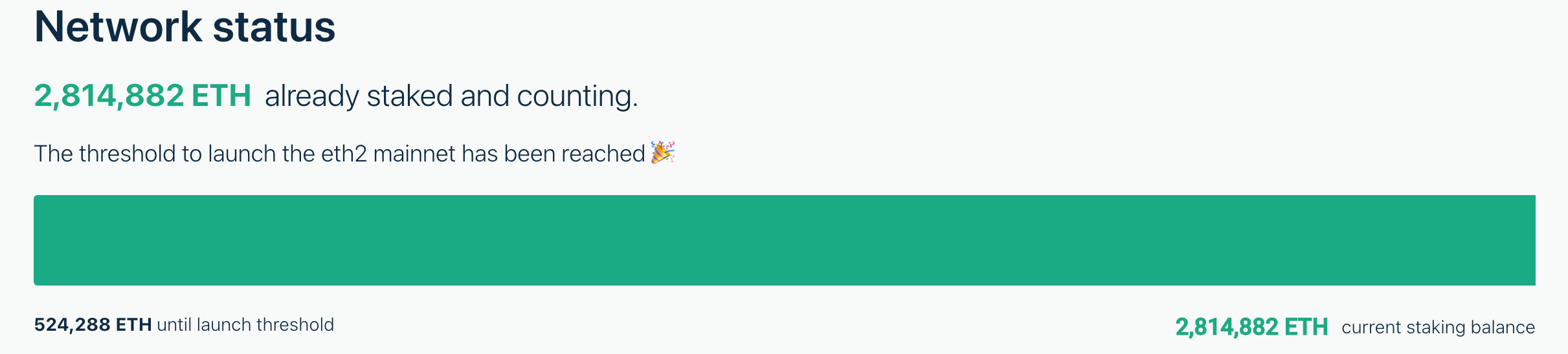 Ethereum находится в процессе перехода с ETH 1.0 на ETH 2.0. Это серьезное обновление, которое изменит алгоритм верификации транзакций Proof-of-Work (доказательство работы, PoW) на Proof-of-Stake (доказательство доли, PoS). Процесс миграции уже запущен. Пользователи разместили на новом блокчейнн миллионы ETH, однако проект все еще использует PoW для подтверждения транзакций.