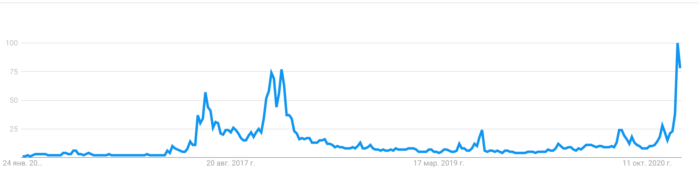 Повышенный интерес к платформе на фоне общего роста на криптовалютном рынке привлекают внимание потенциальных инвесторов. Чтобы узнать о ней поподробнее, они зачастую идут в гугл. В прошлый раз число поисковых запросов по Ethereum обновило максимум, когда монета торговалась на рекордных уровнях. Не исключено, что и в этот раз индикатор отражает настроения рынка и указывает на предстоящий рост.