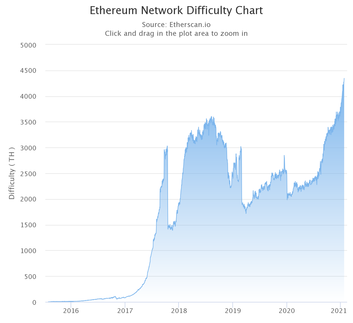 Это значит, что майнерам требуется высокомощное компьютерное оборудование и много электроэнергии. Не все могут себе это позволить. Однако рост сложности майнинга в сети означает, что число майнеров, готовых предоставлять свои ресурсы в обмен на ETH, стремительно растет. Чем больше валидаторов или майнеров подключаются к сети, сложность майнинга пропорционально возрастает. Таким образом, рост сложности майнинга отражает растущий интерес к сети.