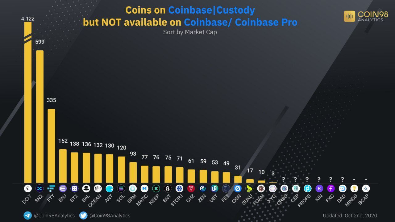Ежедневно на крипторынке появляются десятки новых монет, но 90% из них не доживают даже до листинга на крупных биржах. Этим монетам повезло: они уже появились на Coinbase Custody и в ближайшее время могут быть добавлены в листинг на Coinbase/CoinbasePRO.