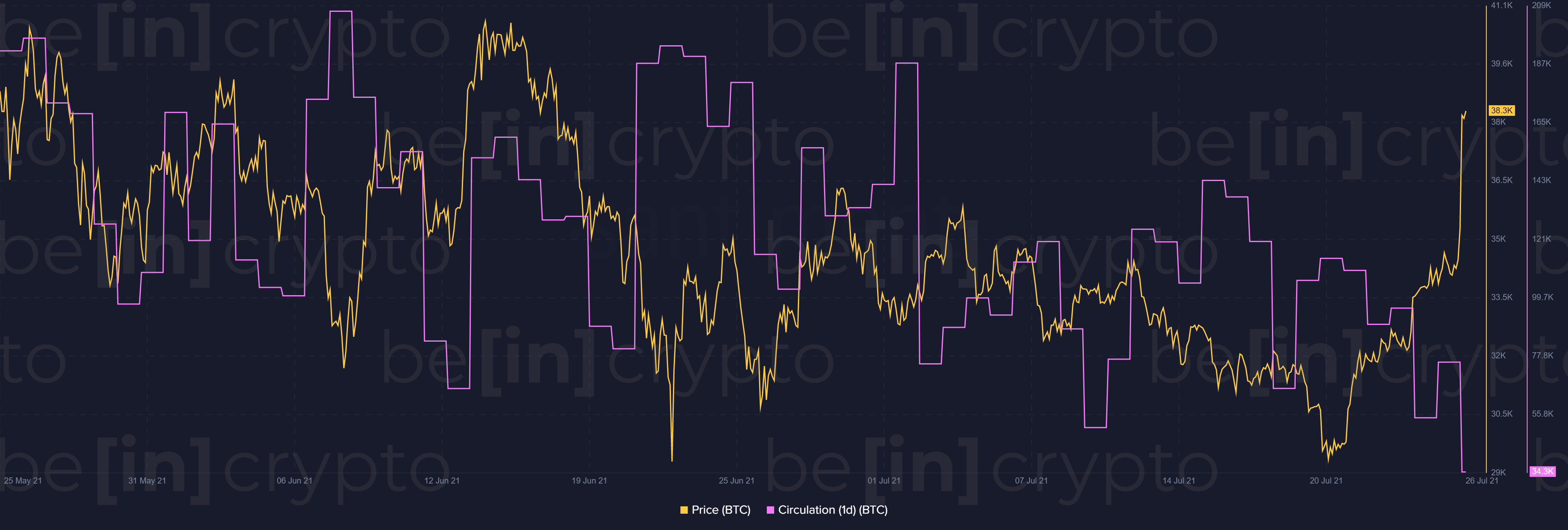 На фоне роста цены также наблюдается резкий обвал числа биткоинов, находящихся в суточном обороте. На графике выше видно, что их число приблизилось к 34,3 тыс. BTC. В последний раз такое было еще в марте 2011 года. По словам экспертов Santiment, эта динамика говорит о том, что ходлеры заняли выжидательную позицию.