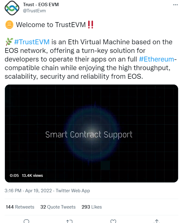 Экосистема EOS теперь поддерживает виртуальную машину Trust EVM для развертывания смарт-контрактов, но пока в пре-афльфа режиме