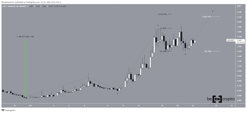 Курс LDO достиг 30 июня минимума на $0.43 и с тех пор энергично рос. На данный момент монета подорожала на 275%.