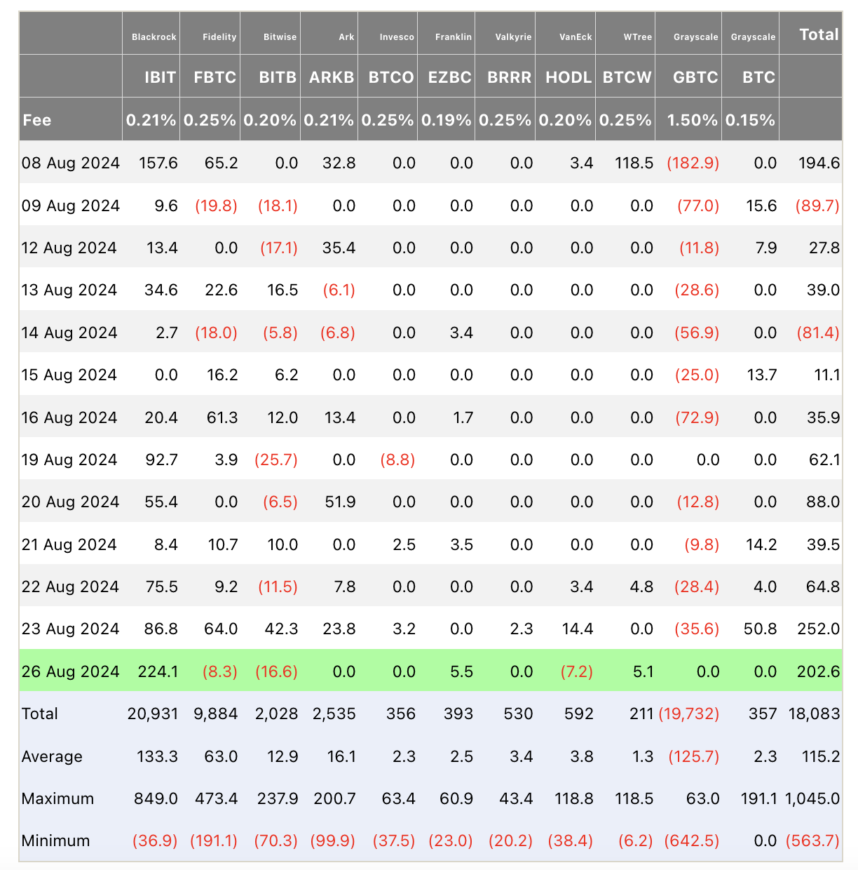 Тем временем общий приток в спотовые BTC-ETF по итогам последней торговой сессии составил $202,6 млн.