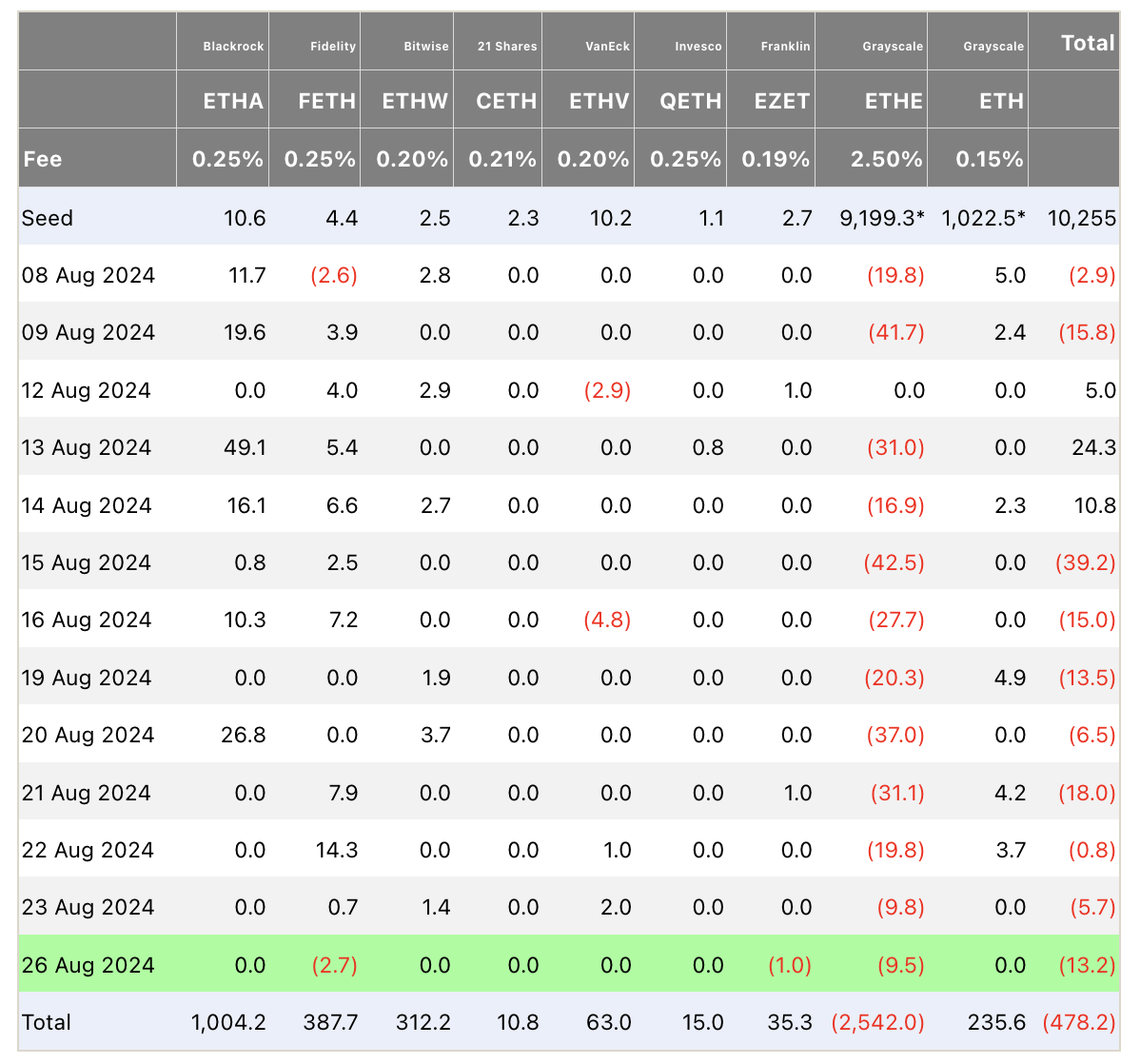 По итогам торговой сессии 26 августа инструмент в общей сложности лишился $13,2 млн. Совокупный отток за прошедшую неделю превысил $72 млн. При этом худшим днем за месяц стало 15 августа, когда инвесторы вывели $39,2 млн.