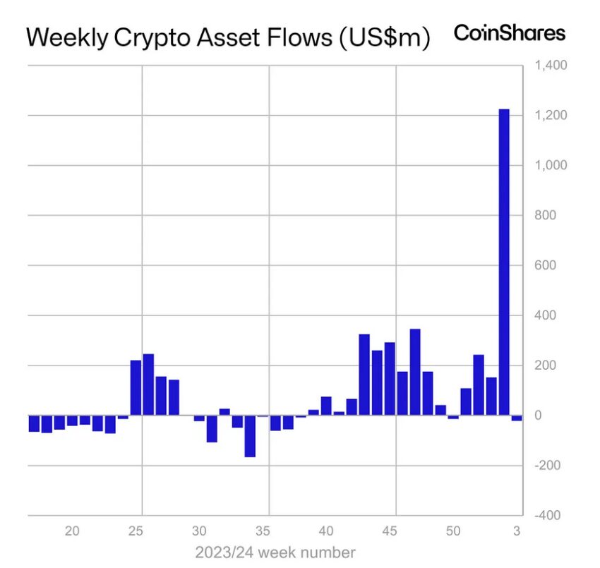 По итогам прошлой недели приток капитала в инвестиционные продукты на базе криптовалют составил $21 млн. Об этом говорится в новом отчете CoinShares.
