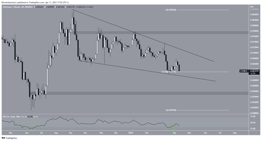 SponsoredТем временем интересная ситуация наблюдается и в паре ETH/BTC. Здесь цена с сентября 2022 года снижалась внутри паттерна «нисходящий клин». Эта модель считается бычьей, и это значит, что в конечном итоге цена может совершить бычий прорыв из нее.