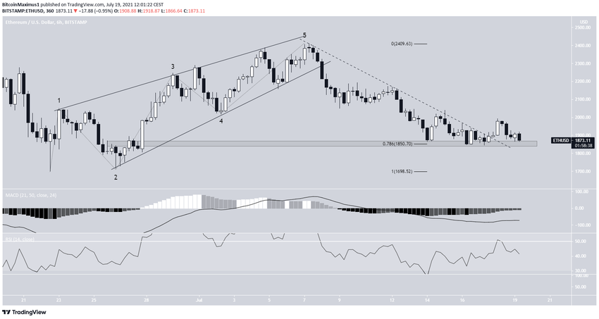 Sponsored SponsoredETH только что совершил бычий пробой линии нисходящего сопротивления (пунктир), которая присутствовала на графике с 7 июля. На момент написания торги проходили внутри области горизонтальной поддержки на $1 850 (уровень Фибо 0.786 коррекции).