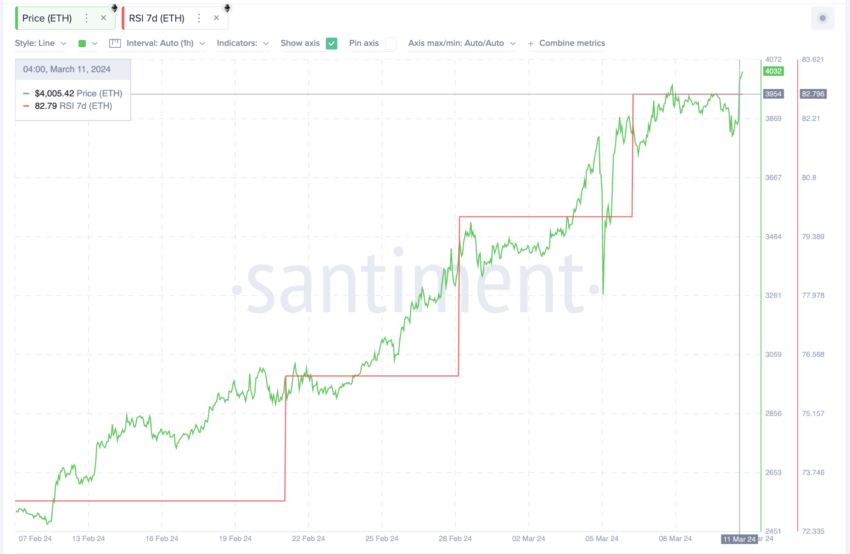 Однако просто высокий RSI хотя и требует осторожности, но не всегда является надежным предвестником спада. Исторически цены на ETH росли, даже несмотря на высокие показатели RSI.