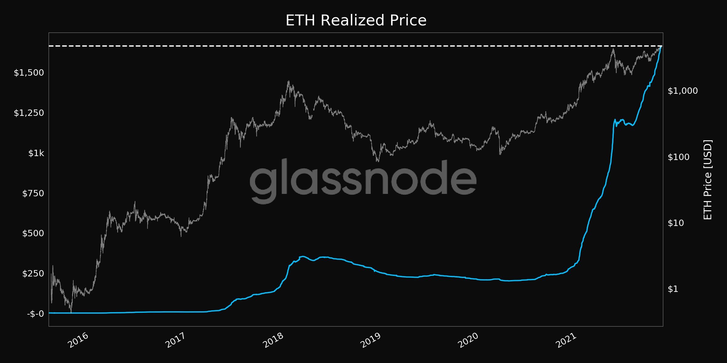 Реализованная цена ether достигла нового рекорда на уровне $1663, согласно данным аналитического ресурса Glassnode