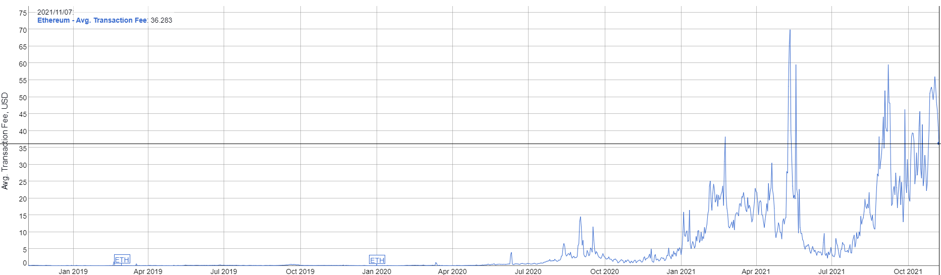 При этом еще в начале ноября показатель взлетал до ~$56. Это ниже вспышки 12 мая, когда комиссия выросла до $70, но все еще слишком высоко по сравнению с июлем этого года. Напомним, тогда комиссии составляли, в среднем, ~$3-5. О том, какие критические уязвимости выявили у Ethereum 2.0 в Стэнфордском университете — читайте в материале редакции BeInCrypto.