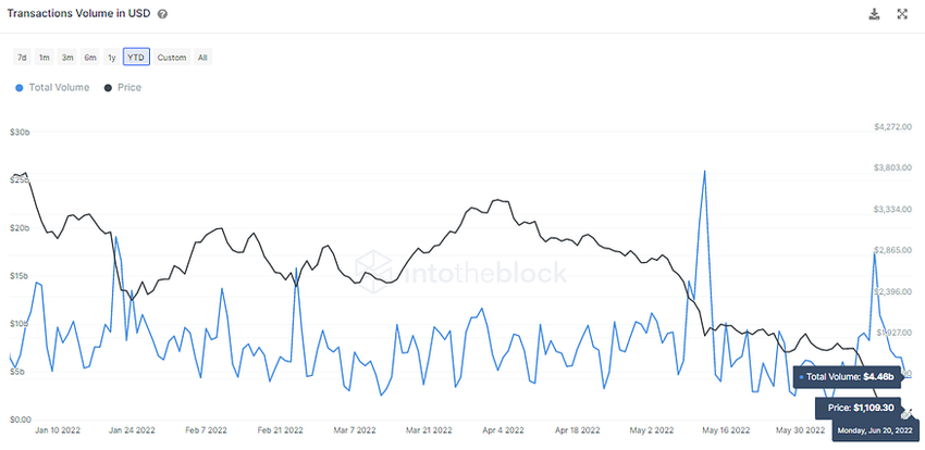 Экстремальные рыночные условия усилили отток пользователей из сети Ethereum, где активность с начала года упала на 28%