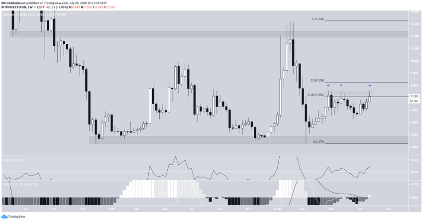 На недельном графике ETC торгуется в диапазоне $3.30-$12 с октября 2018 года.