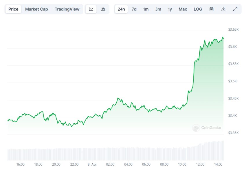 По данным CoinGecko, на момент написания материала Ethereum торгуется на уровне в $3 641. После не самой лучшей недели, вызванной, главным образом, падением биткоина (BTC), за последние сутки стоимость ETH выросла на 7,6%.