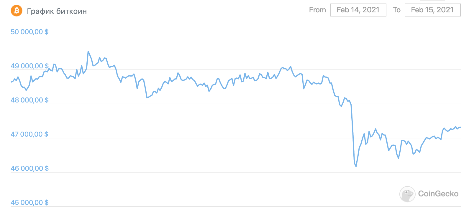 На момент написания статьи биткоин торгуется на уровне $47 400. За сутки монета подешевела более чем на 2%. ETH потерял 4%, спустившись к отметке $1 750.
