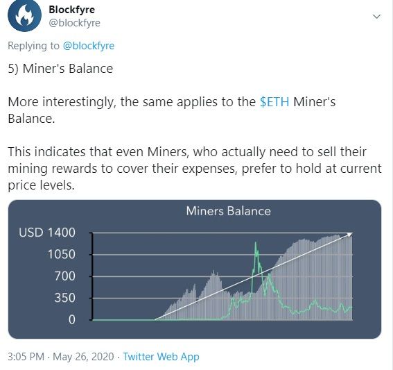 То же самое относится и к балансу майнера USD/ETH. Это указывает на то, что даже майнеры, которым нужно продавать свои вознаграждения за майнинг, чтобы покрыть свои расходы, предпочитают держаться на текущих уровнях цен.