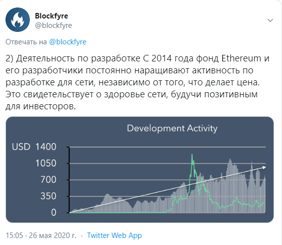 Первый и самый главный фактор, который свидетельствует о здоровье сети, – деятельность по разработке. Как показывают исследования, с 2014 года компания значительно увеличила свой потенциал в данном вопросе и разрабатывала новые приложения, независимо от поведения цены на рынке.