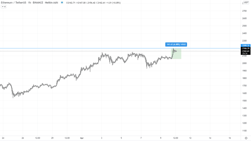 Ethereum медленно, но верно добрался до нового исторического максимума. Вторая по величине криптовалюта в субботу протестировала уровень $2 200 на фоне общего бычьего тренда на рынке.