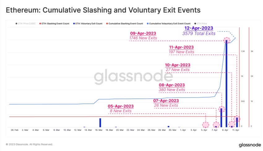 Ожидаемый апгрейд давно привлекал повышенное внимание криптосообщества. Одной из причин являлся тот факт, что обновление открывало инвесторам доступ к своим монетам, ранее заблокированным на стейкинге. По оценкам аналитиков Glassnode, только за последнюю неделю, предшествовавшую апгрейду, в очередь «на выход» встал еще 2381 валидатор сети. В целом по состоянию на момент написания этот показатель составлял 3579.