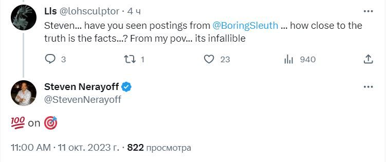 На вопрос одного из подписчиков Нерайова о том, насколько заявления TruthLabs соответствуют реальности, блокчейн-разработчик написал «на 100%».