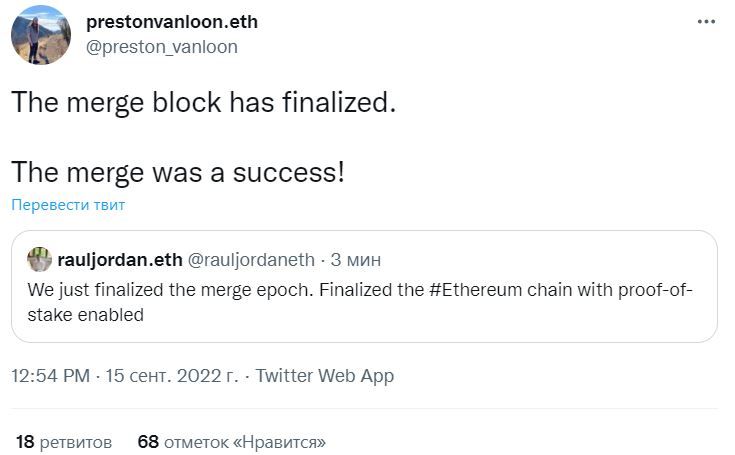 Участники криптосообщества могли наблюдать за миграцией ETH вместе с командой разработчиков проекта во время онлайн-трансляции.