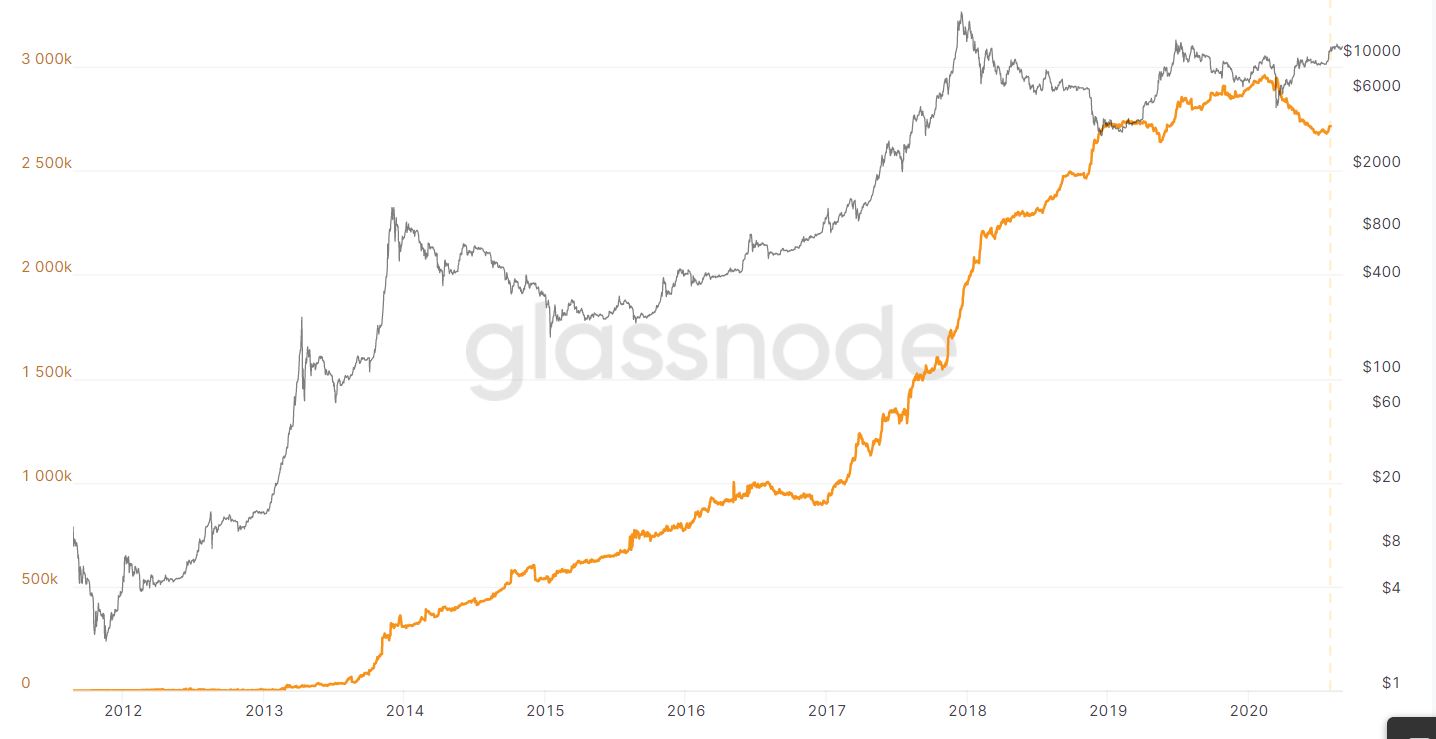 Параллельно в сети зафиксировано рекордное количество биткоин-адресов, на которых хранится, как минимум, одна монета.