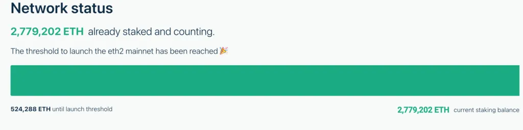 Один из них — это растущая поддержка новой версии сети ETH 2.0. Объем монет, заблокированных в протоколе Beacon Chain, растет рекордными темпами. Сейчас там находится уже более 2% от всех ETH в обращении.