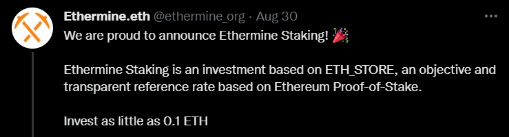 Майнинг-пул Ethermine теперь оказывает услуги стейкинга для ether (ETH). Об этом разработчики проекта сообщили в твиттере.