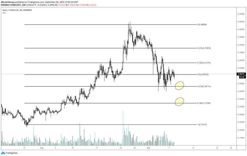 Криптовалютный трейдер @altcoinsherpa поделился в твиттере графиком LEND, отметив, что монета все еще корректируется, но в скором времени может возобновить подъем после падения к уровню $0.035.