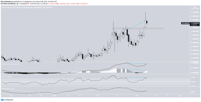 Курс OCEAN растет с 28 февраля. Монета обновила исторический максимум 7 марта на уровне $1,69.