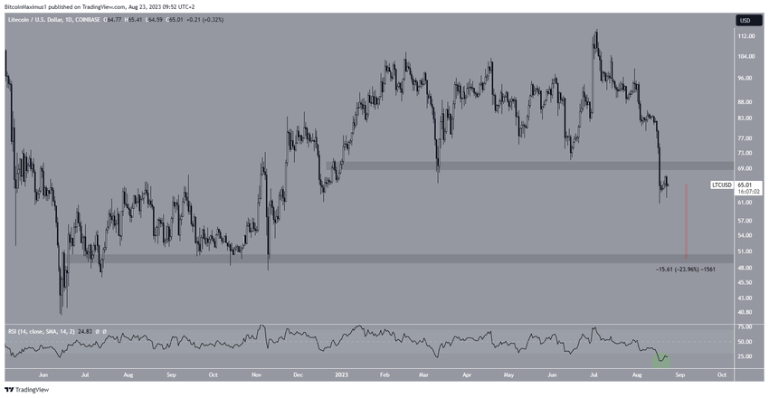Цена Litecoin (LTC) достигла нового годового максимума в июле, но с тех пор снижалась. Это снижение подтвердило в качестве сопротивления горизонтальную область $100