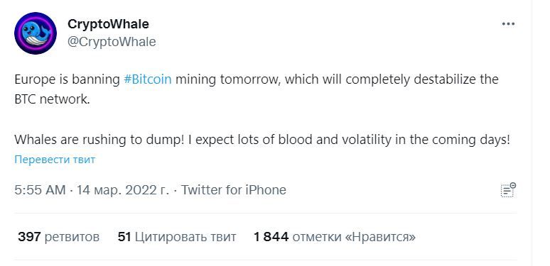 Пользователи сети считают, что падением биткоина в случае одобрения ввода ограничений на майнинг PoW-криптовалют в ЕС могут воспользоваться крупные инвесторы. Напомним, на распродаже монет можно зарабатывать через открытие «коротких» позиций (заработок на падении цены актива).