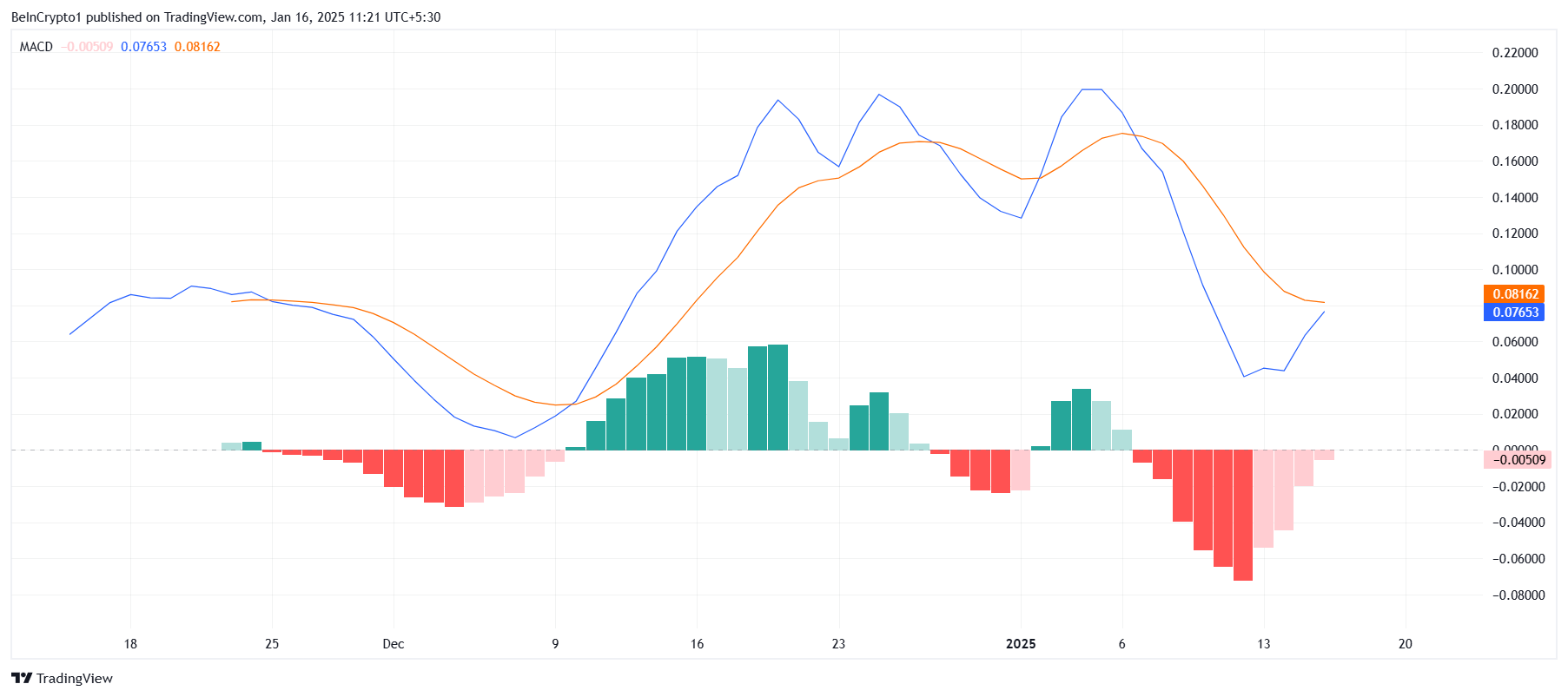 Индикатор MACD указывает на возможное появление «золотого креста» на графике FARTCOIN. Показатель готов вернуться в зеленую зону, что сигнализирует о потенциальном переходе к бычьему импульсу.