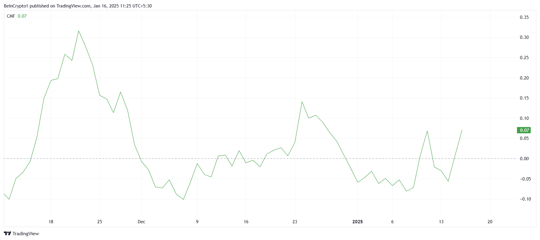 Кроме того, индикатор денежного потока Чайкина (CMF) на момент написания колеблется около нулевой линии, что отражает неопределенность в рядах инвесторов. Вероятно, из-за сильной волатильности инвесторы не спешат вкладываться в криптовалюту и предпочитают занимать выжидательную позицию. Чтобы продолжить восходящий тренд, FARTCOIN понадобится финансовая поддержка со стороны трейдеров.