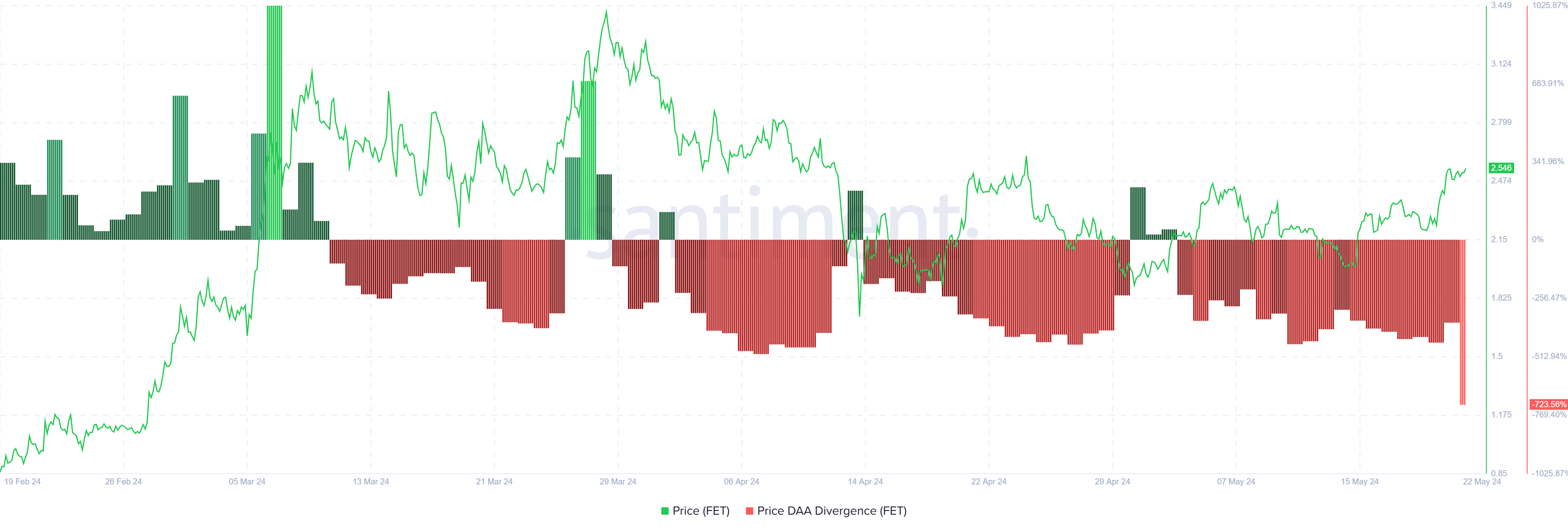 Обычно, когда цена растет, а участие в сети снижается, это является сигналом к продаже. В случае с FET это условие соблюдается, что потенциально может спровоцировать продажи для фиксации прибыли.