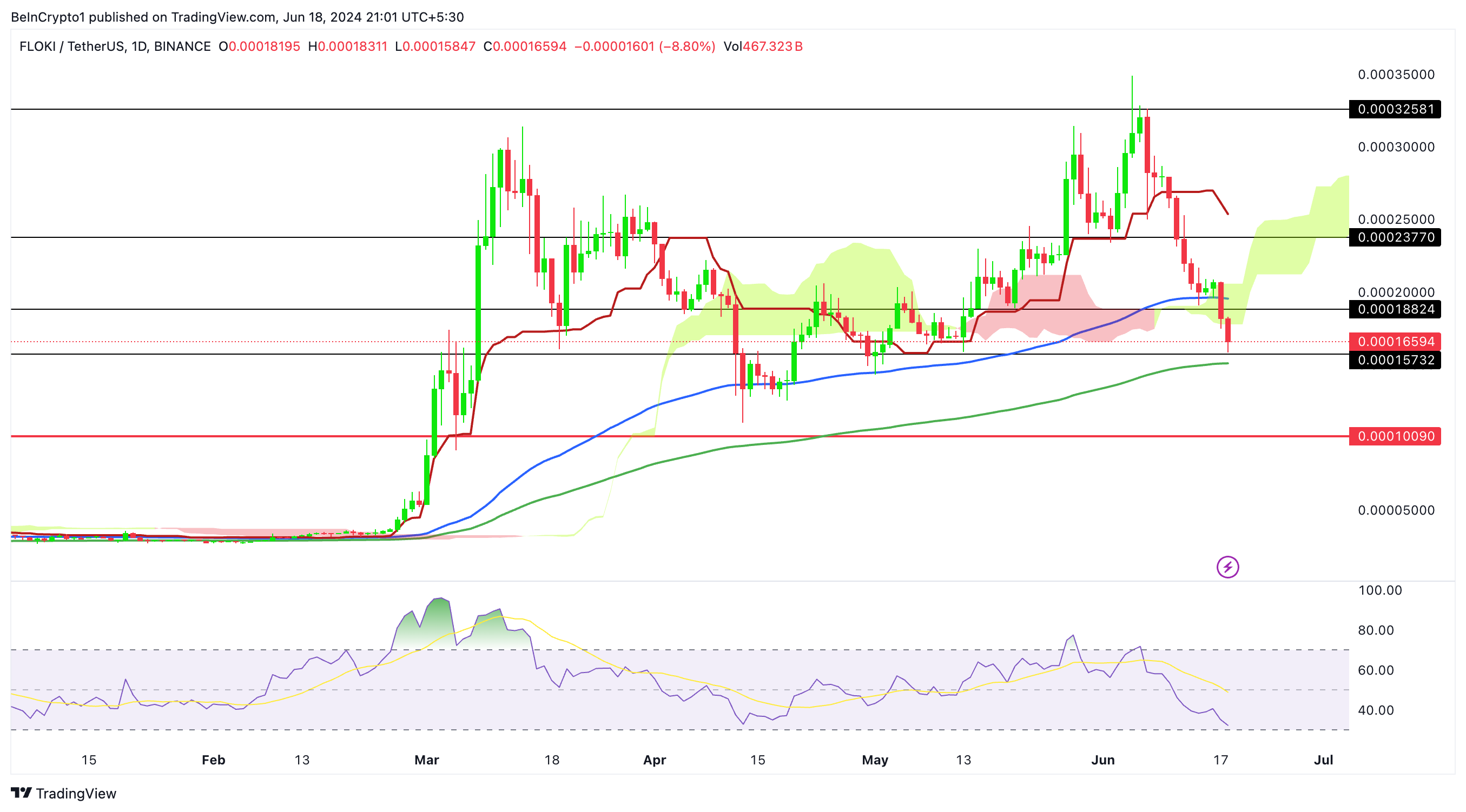 Ранее мы уже отмечали, что цена Floki может упасть после прорыва ключевых уровней поддержки.
