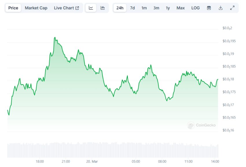 По данным CoinGecko, на фоне объявления о сотрудничестве цена мемкоина проекта Floki выросла почти на 11%. На момент написания материала актив торгуется на уровне в $0,000184.