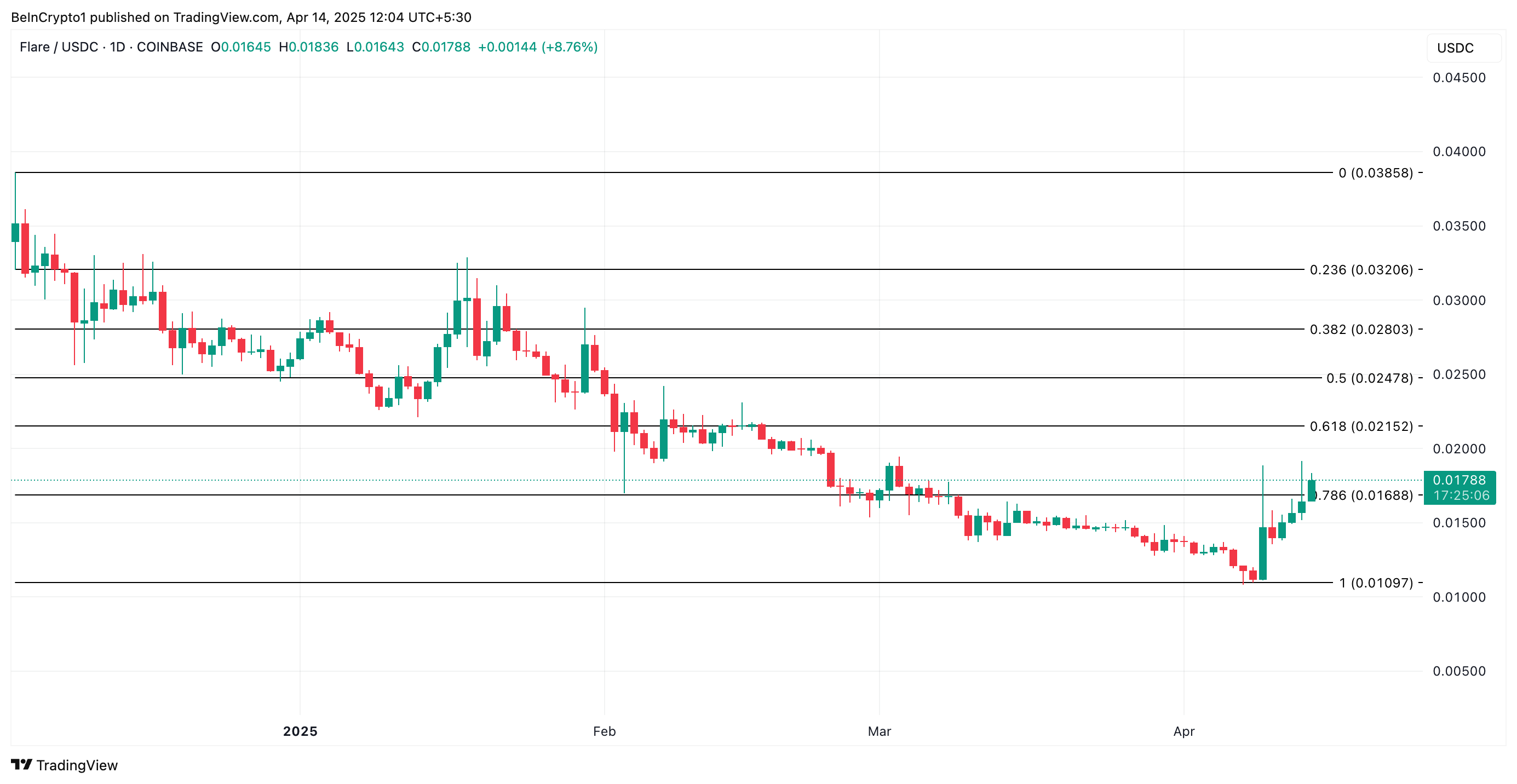 Двузначный рост FLR за последние сутки позволил цене преодолеть ключевое сопротивление на уровне $0,016. Если эта отметка станет надежной поддержкой, FLR может продолжить рост и достичь $0,021.