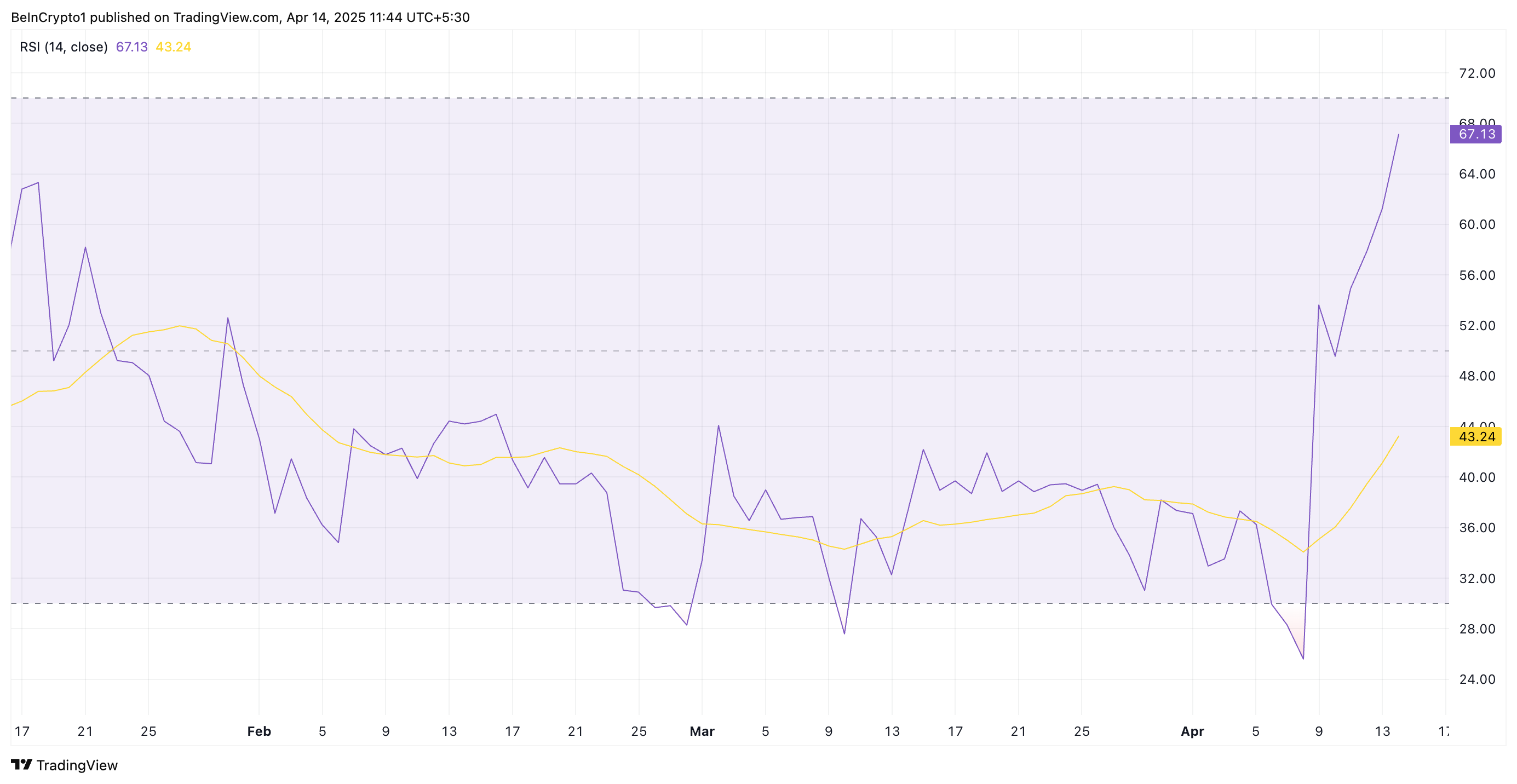 С девятого апреля FLR обновляет ежедневные максимумы, что говорит о сильном бычьем импульсе. Индекс относительной силы (RSI) монеты, который растет и на момент публикации составляет 67,13, подтверждает позитивный прогноз.