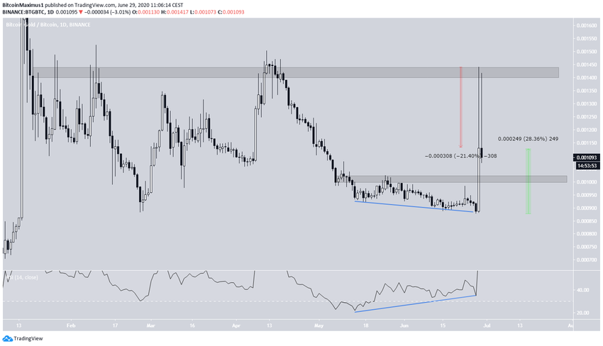 Если так, монета может опуститься в направлении поддержки ₿0.001. При этом важно отметить, что что ранее дневной RSI подавал существенные сигналы бычьей дивергенции, что может являться сигналом разворота тренда. Таким образом, пока сохраняется статус вышеупомянутой поддержки, BTG, скорее всего, продолжит попытки роста.