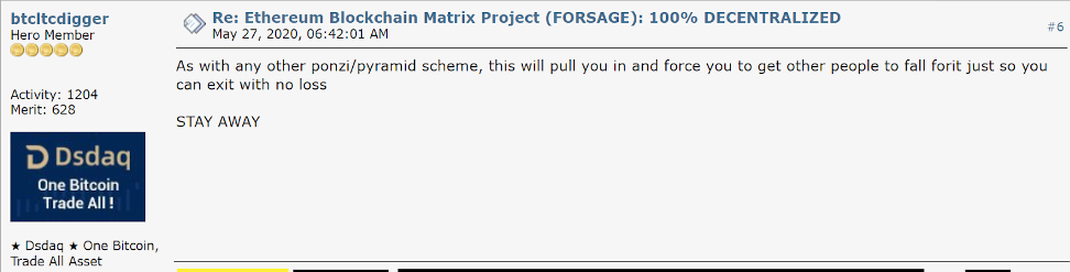 Сами создатели проекта утверждают, что он не имеет никакого отношения к пирамидам. Задача создателей схем Понци – получить как можно больше денег инвесторов и скрыться с ними. В случае с полностью децентрализованным проектом FORSAGE, по их словам, такая возможность отсутствует. Гарантией безопасности средств пользователей выступает открытый код платформы.