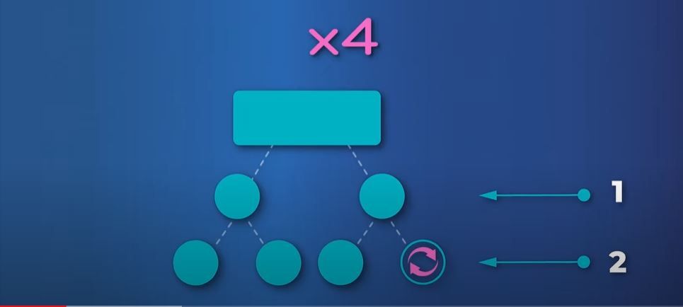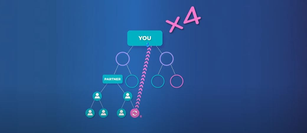 В отличие от X3, в площадке X4 две линии рефералов, каждая из которых делится еще на две. Инвестиции в проект первых двух приглашенных партнеров уходят вышестоящему участнику проекта. Доход приносят следующие четыре участника (3 выплаты по 100% и один реинвест, который открывает аналогичную площадку).