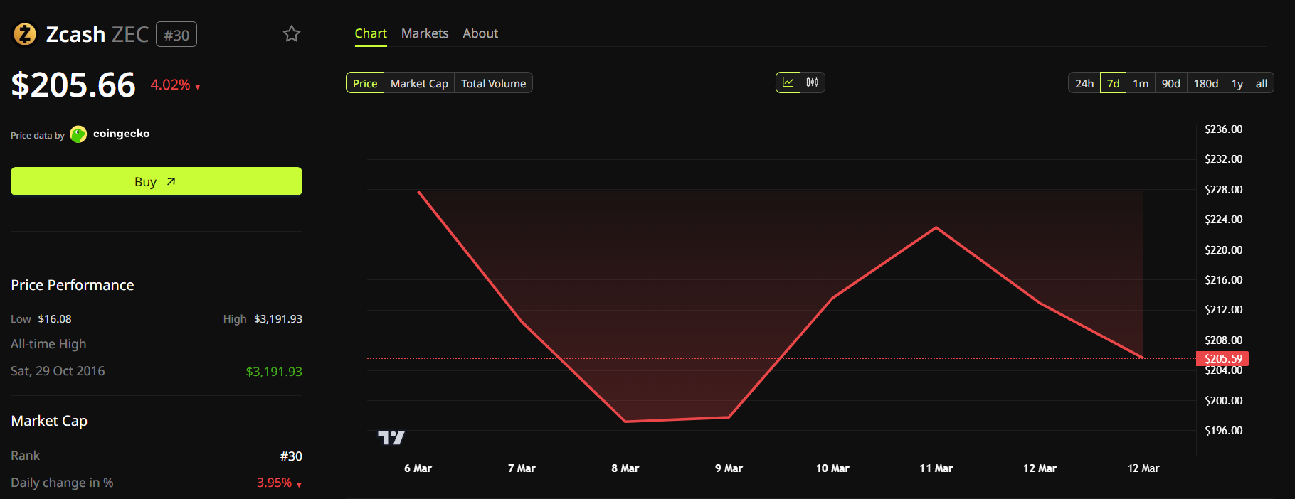 - За последнюю неделю цена ZEC снизилась более чем на 11%.