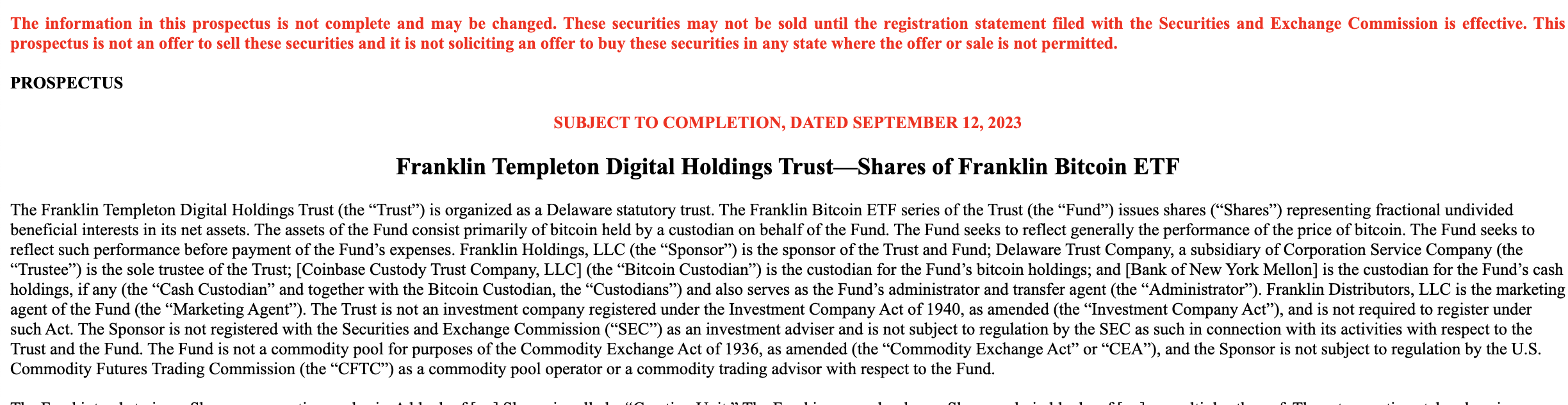 Гонка за запуск первого спотового биткоин-ETF в США продолжает набирать обороты: Franklin Templeton подала заявку на запуск Franklin Bitcoin ETF.