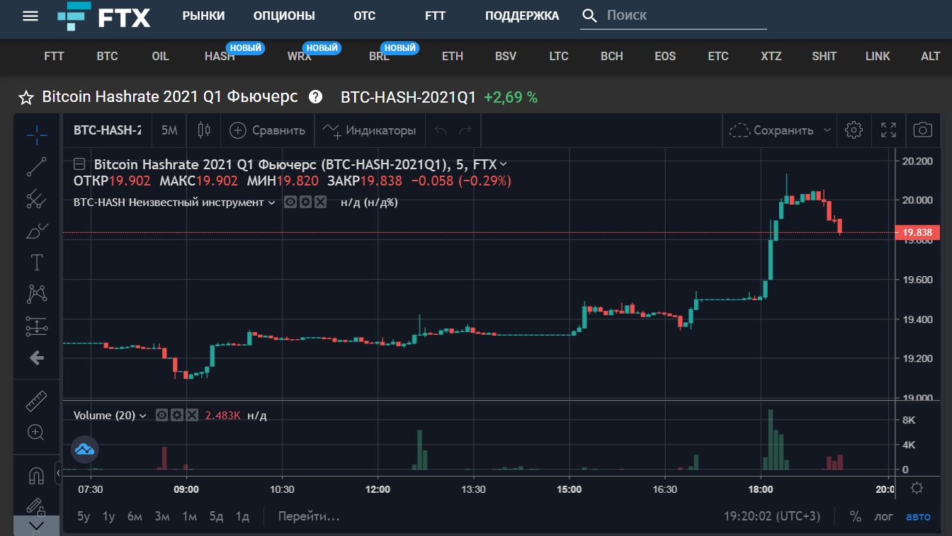 Биржа запустила три контракта на хэшрейт ВТС – на 3-й квартал 2020 года, а также на 4-й квартал этого года и 1-й квартал следующего. Примечательно, что в первые же 12 часов после запуска бычьи фьючерсы на хэшрейт биткоина продемонстрировали активный рост, а внутридневные торговые объемы такими контрактами почти достигли $1 млн.