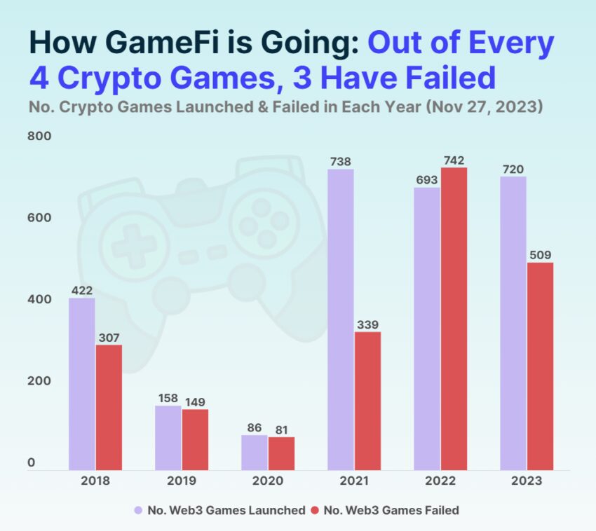 За последние пять лет провалились более 2 тыс. игр в сфере Web3. Согласно статистике, три из четырех проектов терпят неудачу